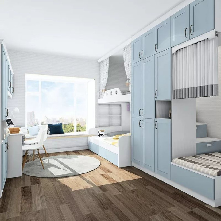 很多家庭选择将大宝的房间换一张高低床,就让大宝二宝一起住了。这样也不错,但是两个孩子之间还是存在一定的年龄差,孩子们的衣物、玩具也需要分开收纳,高低床只是解决了两个孩子睡眠问题,要想给孩子们打造更舒适成长环境还是要多花点功夫。